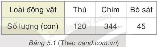 Để biểu diễn dữ liệu Bảng 5.1, ta nên chọn biểu đồ cột do số lượng các loài động vật khá lớn, không có ước chung lớn.