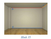 Quan sát một phần căn phòng (Hình 35), hãy cho biết vị trí tương đối của các cặp đường thẳng a b; a c; b c.