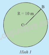 Một hàng rào bao quanh một sân cỏ hình tròn có bán kính 10 m (Hình 1) được ghép bởi 360 phần bằng nhau. Hãy tính: