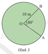 Tính độ dài của của đoạn hàng rào từ A đến B của sân cỏ trong Hình 3, cho biết \(\widehat {AOB} = {80^o}\).