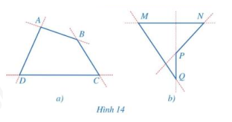 Quan sát các hình 14a, 14b và nêu nhận xét về vị trí của mỗi tứ giác so với đường thẳng chứa một cạnh bất kì của tứ giác đó.