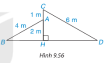 Một ngôi nhà với hai mái lệch AB, CD được thiết kế như Hình 9.56 sao cho CD=6mAB=4mHA=2mAC=1m. Chứng tỏ \(\widehat {AB{\rm{D}}} = \widehat {C{\rm{D}}B}\).