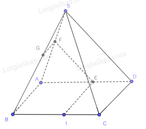 \(\left( \alpha  \right)\) song song với AB nên \(\left( \alpha  \right)\) cắt (SAB) theo giao tuyến d’’ đi qua F và song song với AB. Gọi G là giao điểm của d’’ với SB. Vậy G là giao điểm của SB và \(\left( \alpha  \right)\).