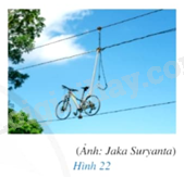 Trong bức ảnh ở Hình 22, sợi dây dưới cùng và bánh xe gợi nên hình ảnh đường thẳng và đường tròn tiếp xúc nhau. Theo em, đường thẳng và đường tròn đó có bao nhiêu điểm chung?