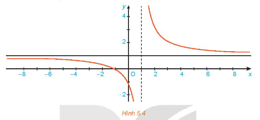 Cho hàm số \(f\left( x \right) = 1 + \frac{2}{{x – 1}}\) có đồ thị như Hình 5.4.