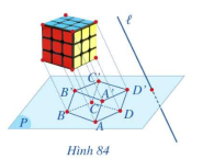 Cho khối rubik không có điểm chung nào với mặt phẳng (P) và đường thẳng l cắt mặt phẳng (P). Hãy xác định ảnh của khối rubik qua phép chiếu song song lên mặt phẳng (P) theo phương l (Hình 84)