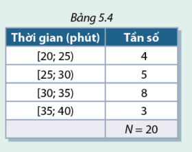 Khoảng thời gian dưới 25 phút tương ứng với nhóm [20, 25)
