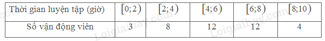 Thời gian luyện tập trong một ngày (tính theo giờ) của một số vận động viên được ghi lại ở bảng sau: