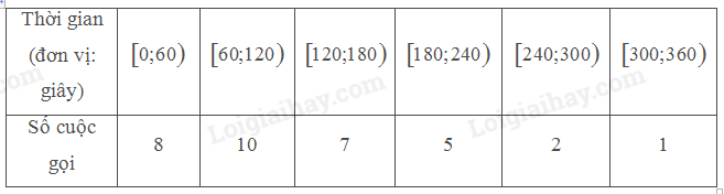 Một người thống kê lại thời gian thực hiện các cuộc gọi điện thoại của người đó trong 2 một tuần ở bảng sau: