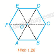 \(\widehat {AOB} = \widehat {BOC} = \widehat {COD} = \widehat {DOE} = \widehat {EOF} = \widehat {FOA} = 60^\circ  = \frac{\pi }{3}\) và \(OA{\rm{ }} = {\rm{ }}OB{\rm{ }} = {\rm{ }}OC{\rm{ }} = {\rm{ }}OD{\rm{ }} = {\rm{ }}OE{\rm{ }} = {\rm{ }}OF\).