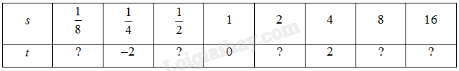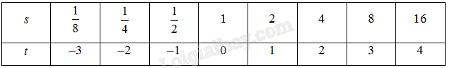 Cho (s) và (t) là hai đại lượng liên hệ với nhau theo công thức (s = {2^t}).