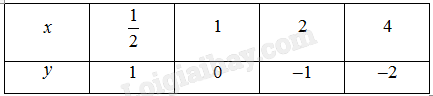 Mà \(\frac{1}{{\sqrt 2 }} > 0,4\) nên \({\log _{\frac{1}{2}}}\frac{1}{{\sqrt 2 }} < {\log _{\frac{1}{2}}}0,4\). Vậy \( – {\log _{\frac{1}{4}}}2 < {\log _{\frac{1}{2}}}0,4\)