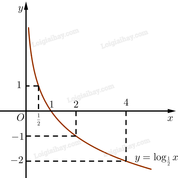 Hàm số \(y = {\log _{\frac{1}{2}}}x\) có cơ số \(\frac{1}{2} < 1\) nên nghịch biến trên \(\left( {0; + \infty } \right)\).