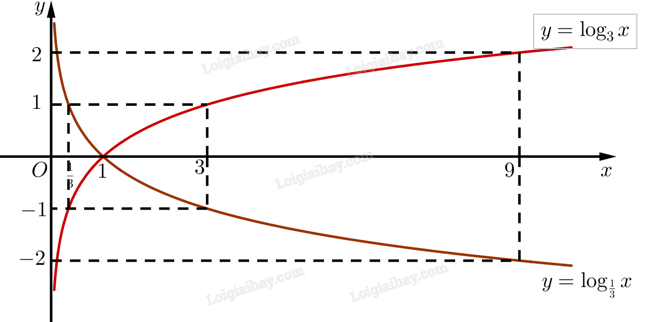 Trên cùng một hệ trục toạ độ, vẽ đồ thị các hàm số \(y = {\log _3}x\) và \(y = {\log _{\frac{1}{3}}}x\).