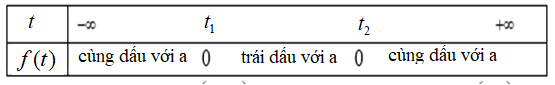 –  Nếu \(\Delta  > 0\) thì \(f(t)\)có 2 nghiệm là \({t_1};{t_2}\)\(({t_1} < {t_2})\). Ta lập bảng xét dấu.
