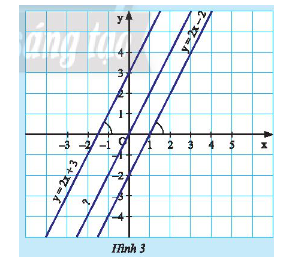 Quan sát Hình 3. a) So sánh hệ số góc của hai đường thẳng: