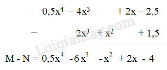 M = 0,5x4 – 4x3 + 2x – 2,5 và N = 2x3 + x2 + 1,5