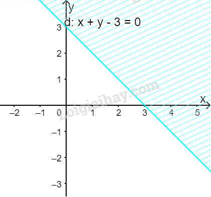 Do đó, miền nghiệm của bất phương trình là nửa mặt phẳng không kể bờ \(d’\), chứa gốc tọa độ O