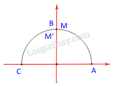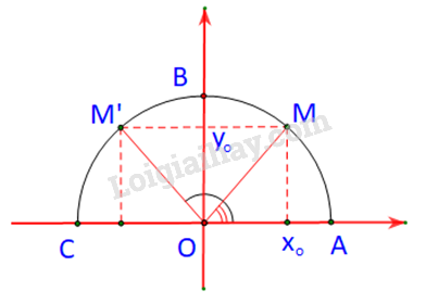 M, M’ là hai điểm trên nửa đường tròn đơn vị tương ứng với hai góc \(\alpha \) và \({180^o} – \alpha \).