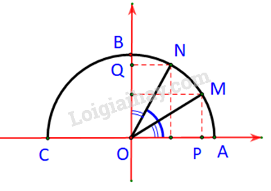 Ta có: \(\alpha  = \widehat {AOM};\;\;{90^o} – \alpha  = \widehat {AON}\)