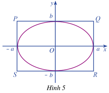 Quan sát elip \(\left( E \right)\) phương trình chính tắc là: \(\frac{{{x^2}}}{{{a^2}}} + \frac{{{y^2}}}{{{b^2}}} = 1\) trong đó \(a > b > 0\) và hình chữ nhật cơ sở PQRS của \(\left( E \right)\)(Hình 5)