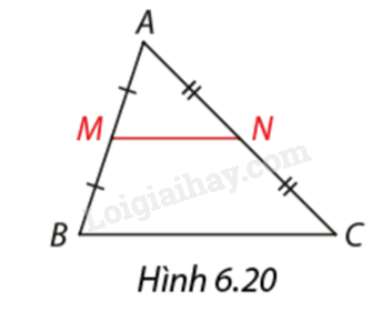 Xem hình 6.20. Giải thích vì sao đường trung bình \(MN\) song song với cạnh