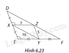 Trong Hình 6.23, giải thích vì sao \(Z\) là trung điểm của \(DF\) và tính độ dài ba cạnh tam giác \(DEF.\)