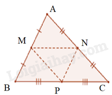 Xét tam giác \(ABC\) có \(\frac{{AM}}{{AB}} = \frac{{AN}}{{AC}} = \frac{1}{2} \Rightarrow MN//BC\) (định li Thalès đảo).