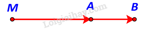 d) \(\overrightarrow {MA} \) và \(\overrightarrow {MB} \) ngược hướng