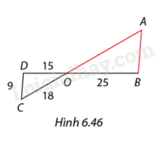 \(\begin{array}{l} \Rightarrow \frac{{DO}}{{BO}} = \frac{{CO}}{{AO}} = \frac{{CD}}{{AB}}\\ \Leftrightarrow \frac{{15}}{{25}} = \frac{{18}}{{AO}} = \frac{9}{{AB}}\\ \Rightarrow AO = 30;AB = 15\end{array}\)