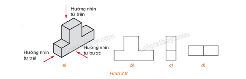 Xác định hình chiếu vuông góc của hình (H.3.8a) trong các hình dưới đây.