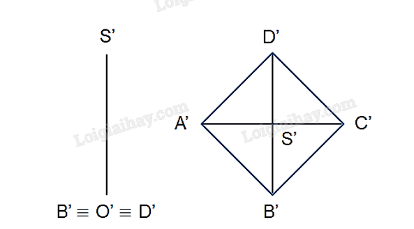 Vì đường thẳng BD vuông góc với mặt phẳng (SAC) nên cũng vuông góc với mặt phẳng hình chiếu đứng (P1). Do đó hình chiếu đứng của ba điểm B, O, D trùng nhau.