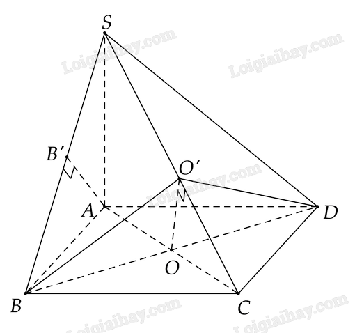 Cho hình chóp \(S.ABCD\) có đáy \(ABCD\) là hình vuông, \(SA \bot \left( {ABCD} \right)\). Gọi \(O\) là giao điểm của \(AC\) và \(BD\), \(B’\) là hình chiếu của \(A\) trên \(SB\), \(O’\) là hình chiếu của \(O\) trên \(SC\). Chứng minh \(AB’//\left( {O’BD} \right)\)