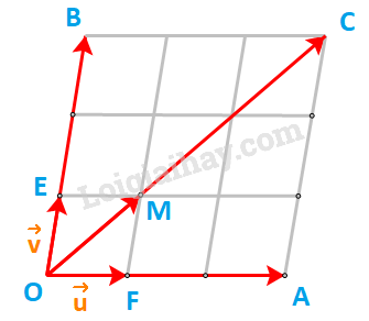 Dễ thấy: tứ giác OEMF là hình bình hành nên \(\overrightarrow {OE}  + \overrightarrow {OF}  = \overrightarrow {OM} \) hay \(\overrightarrow v  + \overrightarrow u  = \overrightarrow {OM} \)