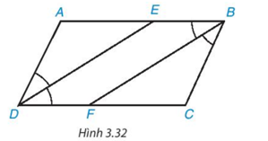 Cho hình bình hành ABCD (AB > BC). Tia phân giác của góc D cắt AB tại E và tia phân giác của góc B cắt CD tại F (H.3.32).