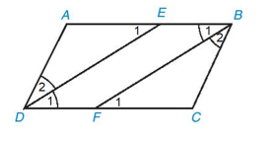 \(\widehat {{B_1}} = \widehat {{B_2}};\widehat {{D_1}} = \widehat {{D_2}}\) mà \(\widehat {A{\rm{D}}C} = \widehat {ABC}\)