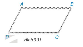 Chia một sợi dây xích thành bốn đoạn: hai đoạn dài bằng nhau, hai đoạn ngắn bằng nhau và đoạn dài, đoạn ngắn xen kẽ nhau. Hỏi khi móc hai đầu mút của sợi dây xích đó lại để được một tứ giác ABCD (có các đỉnh tại các điểm chia) như Hình 3.33 thì tứ giác ABCD là hình gì? Tại sao?