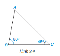 + Áp dụng định lí tổng ba góc trong tam giác, tính góc còn lại của tam giác