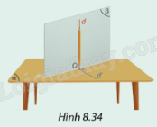 Đặt cây bút chì d vuông góc với mặt bàn \(\left( \alpha  \right)\) và đặt một tấm bia cứng hình chữ nhật \(\left( \beta  \right)\) sao cho thân bút chì nằm trong tấm bìa (Hình 8.34). Ta có hình ảnh đường thẳng d vuông góc với mặt phẳng \(\left( \alpha  \right)\) và mặt phẳng \(\left( \beta  \right)\) chứa d. Gọi a là giao tuyến của \(\left( \alpha  \right)\) và \(\left( \beta  \right)\). Qua giao điểm O của a và d, vẽ một dường thẳng d’ nằm trong \(\left( \alpha  \right)\) và vuông góc với a. Hai mặt phẳng \(\left( \alpha  \right)\)và \(\left( \beta  \right)\) có vuông góc nhau không? Vì sao?