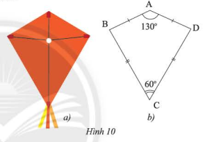Phần thân của cái diều ở Hình 10a được vẽ lại như Hình 10b. Tìm số đo các góc chưa biết trong hình.
