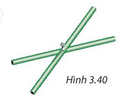 Hai thanh tre thẳng bằng nhau, được gắn với nhau tại trung điểm của mỗi thanh. Khi các đầu mút của hai thanh tre đó tạo thành bốn đỉnh của một tứ giác (H.3.40) thì tứ giác đó là hình gì? Tại sao?
