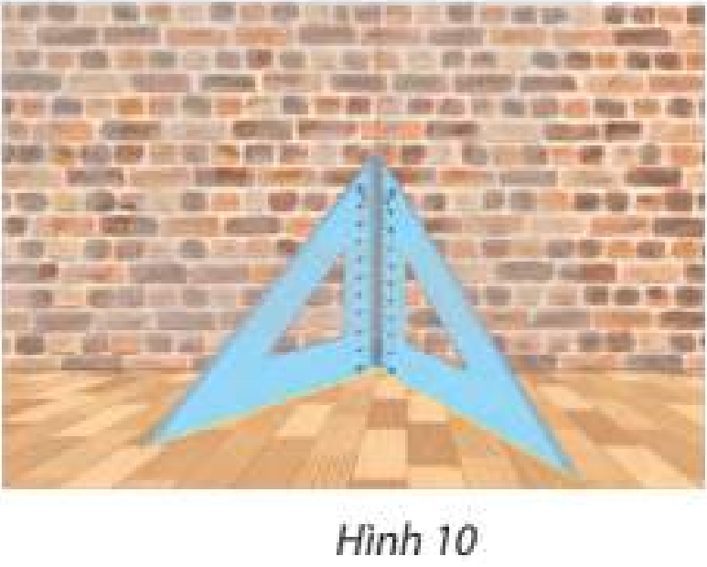 Mô tả cách kiểm tra một bức tường vuông góc với mặt sàn bằng hai cái êke trong Hình 10.