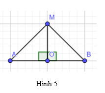 Cho đoạn thẳng AB có O là trung điểm và d là đường trung trực. Lấy điểm M tùy ý thuộc d (Hình 5). Chứng minh rằng hai tam giác MOA và MOB bằng nhau, từ đó suy ra MA = MB