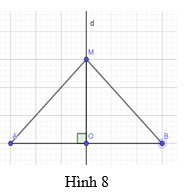 Trong Hình 8, cho biết d là đường trung trực của đoạn thẳng AB, điểm M thuộc đường thẳng d, MA = x + 2 và MB = 7. Tính x