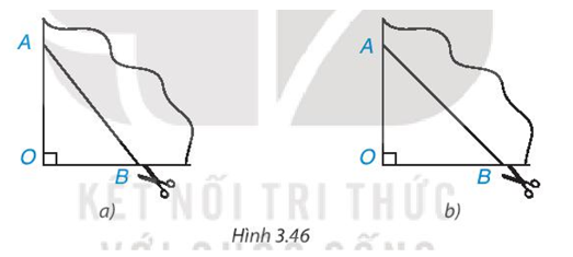 Lấy một tờ giấy, gấp làm tư tạo ra một góc vuông O, đánh dấu hai điểm A, B trên hai cạnh góc vuông rồi cắt theo đoạn thẳng AB (H.3.46a). Sau khi mở tờ giấy ra, ta được một tứ giác. Tứ giác đó là hình gì? Vì sao? Nếu ta có OA = OB thì tứ giác nhận được là hình gì (H.3.46b)?