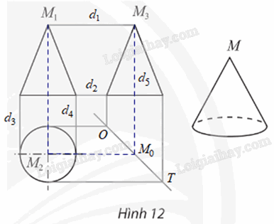 c) Nêu cách xác định điểm M3 biểu diễn đỉnh M của hình nón trong hình chiếu cạnh khi biết hai điểm M1 và M2 biểu diễn M trong hình chiếu đứng và hình chiếu bằng.