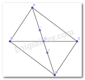 Mà OI = OJ do cùng \( = \dfrac{1}{3}OA = \dfrac{1}{3}OD\)(tính chất trọng tâm trong tam giác)
