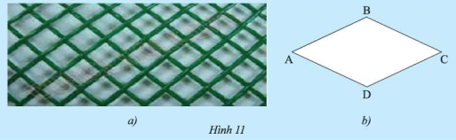 Hình 11a là hình chụp tấm lưới thép được đan thành nhiều mắt. Hình 11b là hình vẽ phóng to của một mắt lưới. Đo độ dài các cạnh của tứ giác \(ABCD\) và rút ra nhận xét.