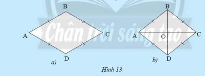 b) Cho hình thoi \(ABCD\)\(O\) là giao điểm của hai đường chéo (Hình 13b). Các tam giác \(OAB\), \(OCB\), \(OCD\), \(OAD\) có bằng nhau không?
