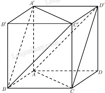 Cho hình lập phương \(ABCD.A’B’C’D’\) có cạnh bằng \(a\). Tính khoảng cách: